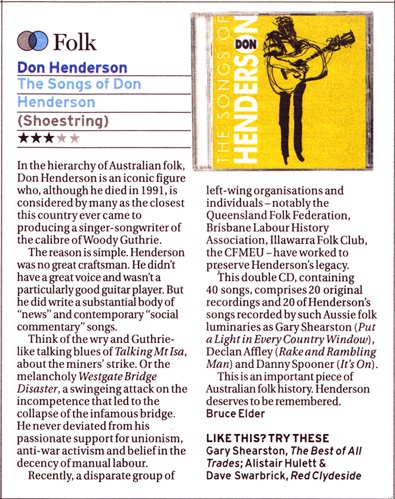 In the hierarchy of Australian folk, Don Henderson is an iconic figure who, although he died in 1991, is considered by many as the closest this country ever came to producing a singer-songwriter of the calibre of Woody Guthrie.